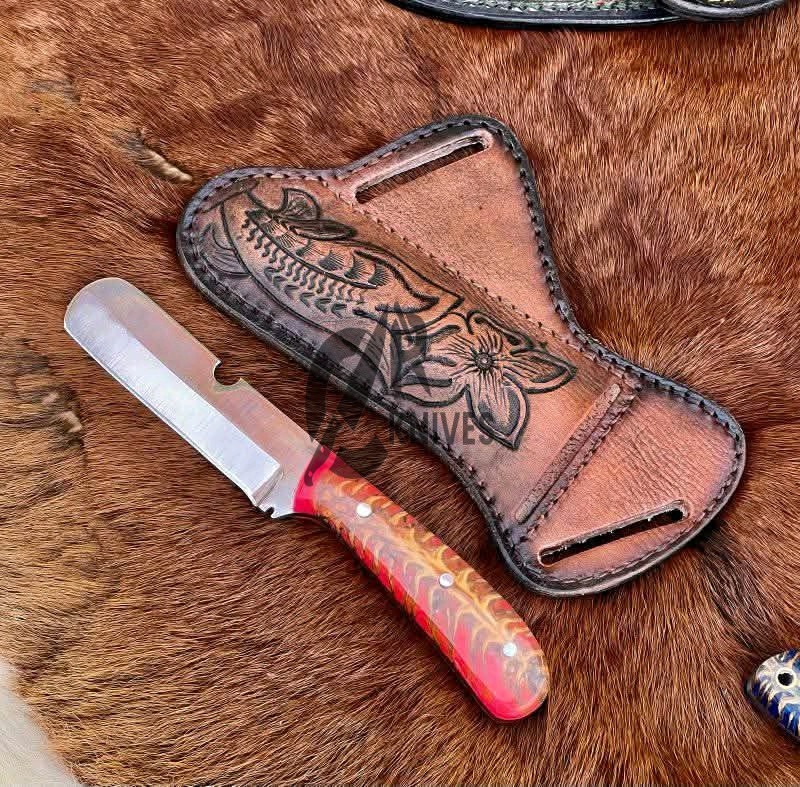 Custom Red Pine Cone Resin Handle Bullcutter Cowboy Knife