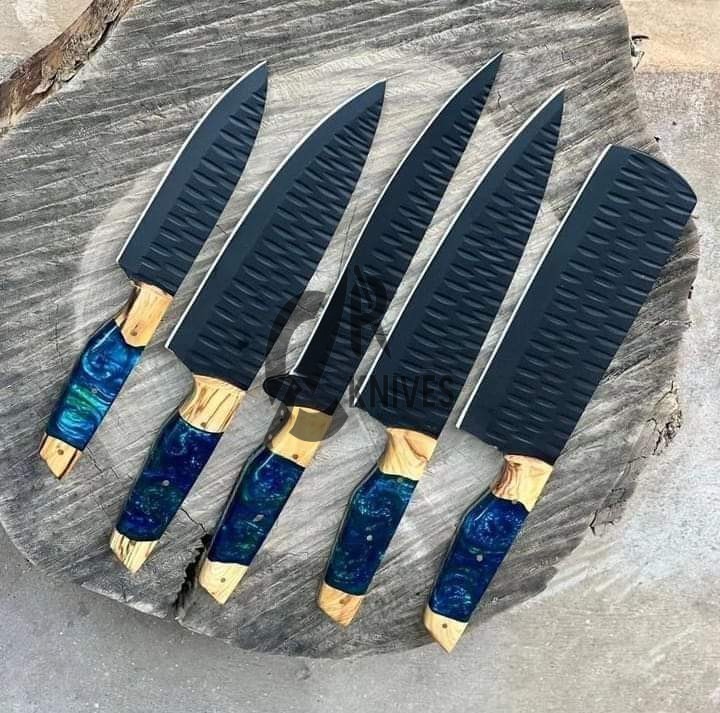 Handmade Epoxy Resin & Olive Wood Handle Kitchen Knives Set
