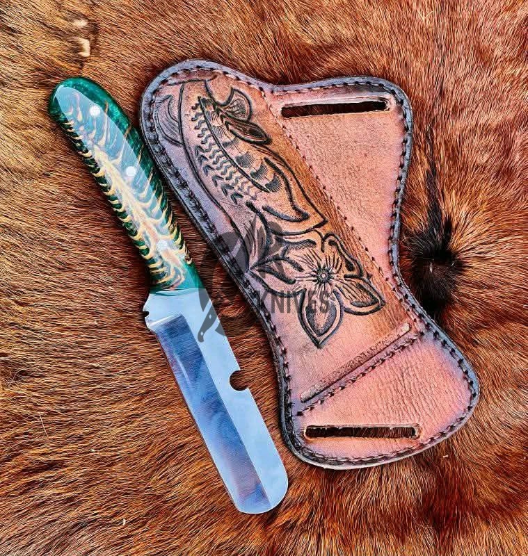 Handmade Green Pine Cone Resin Handle Bullcutter Cowboy Knife